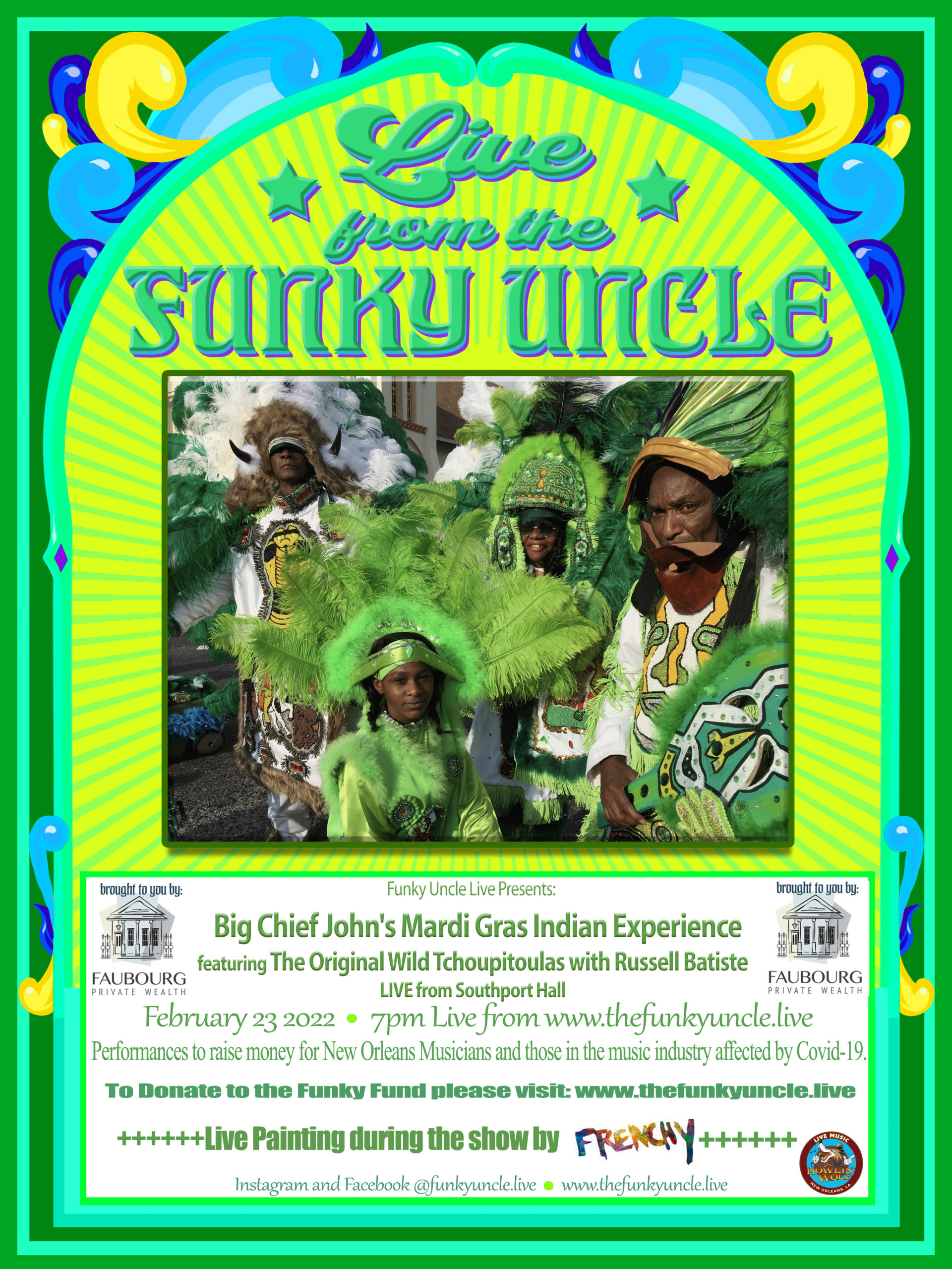 Feb23 Big Chief John’s Mardi Gras Indian Experience featuring The Original Wild Tchoupitoulas with Russell Batiste